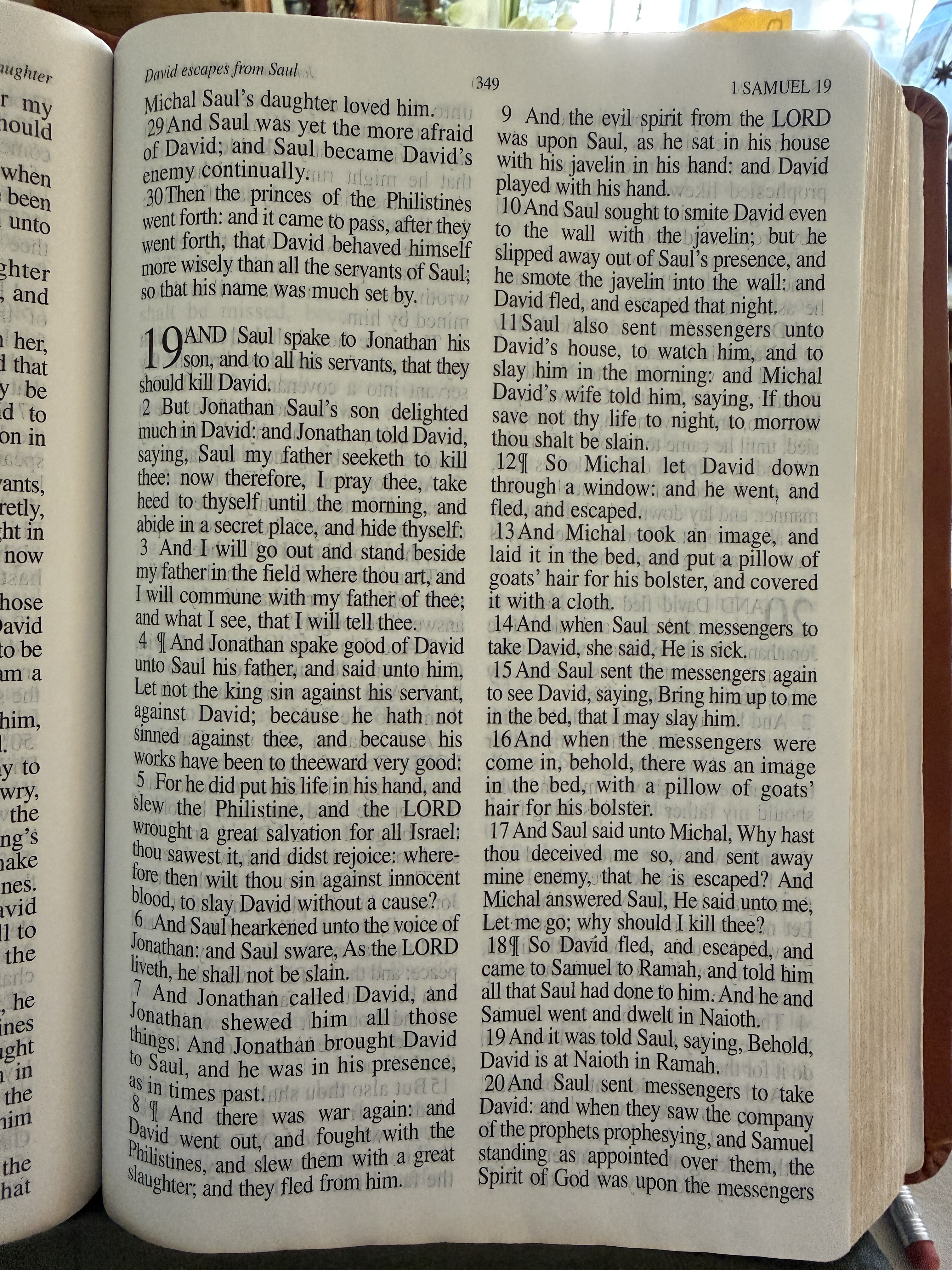 Today’s scriptures March 25 the first book of Samuel (19-21)